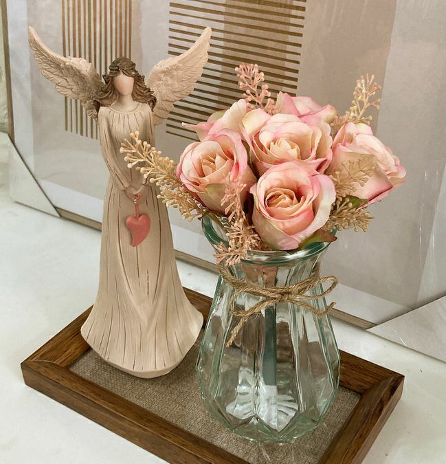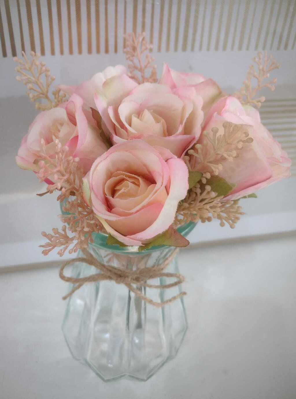 Arranjo Decorativo com Mini Rosas em cachepot em Vidro Transparente