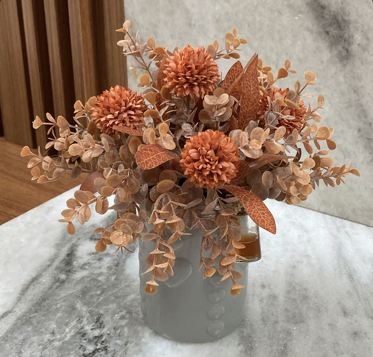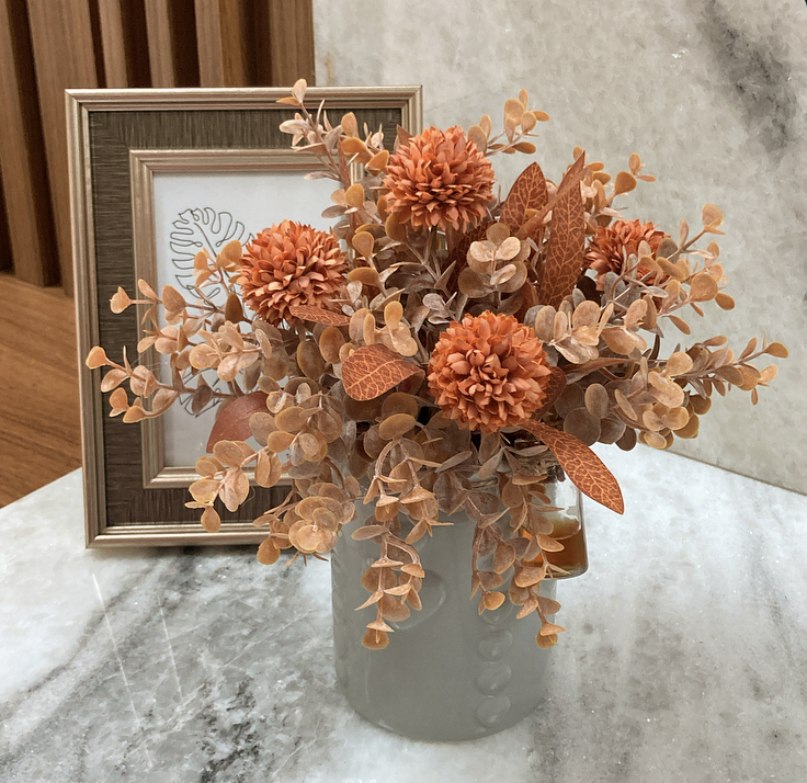 🌿 Transforme o ambiente da sua casa ou escritório com este belíssimo vaso decorativo! Composto por flores artificiais de alta qualidade e folhagens em tons terrosos, este arranjo traz sofisticação e delicadeza a qualquer espaço. Ideal para decorar mesas de centro, aparadores ou prateleiras, criando um toque acolhedor e natural.