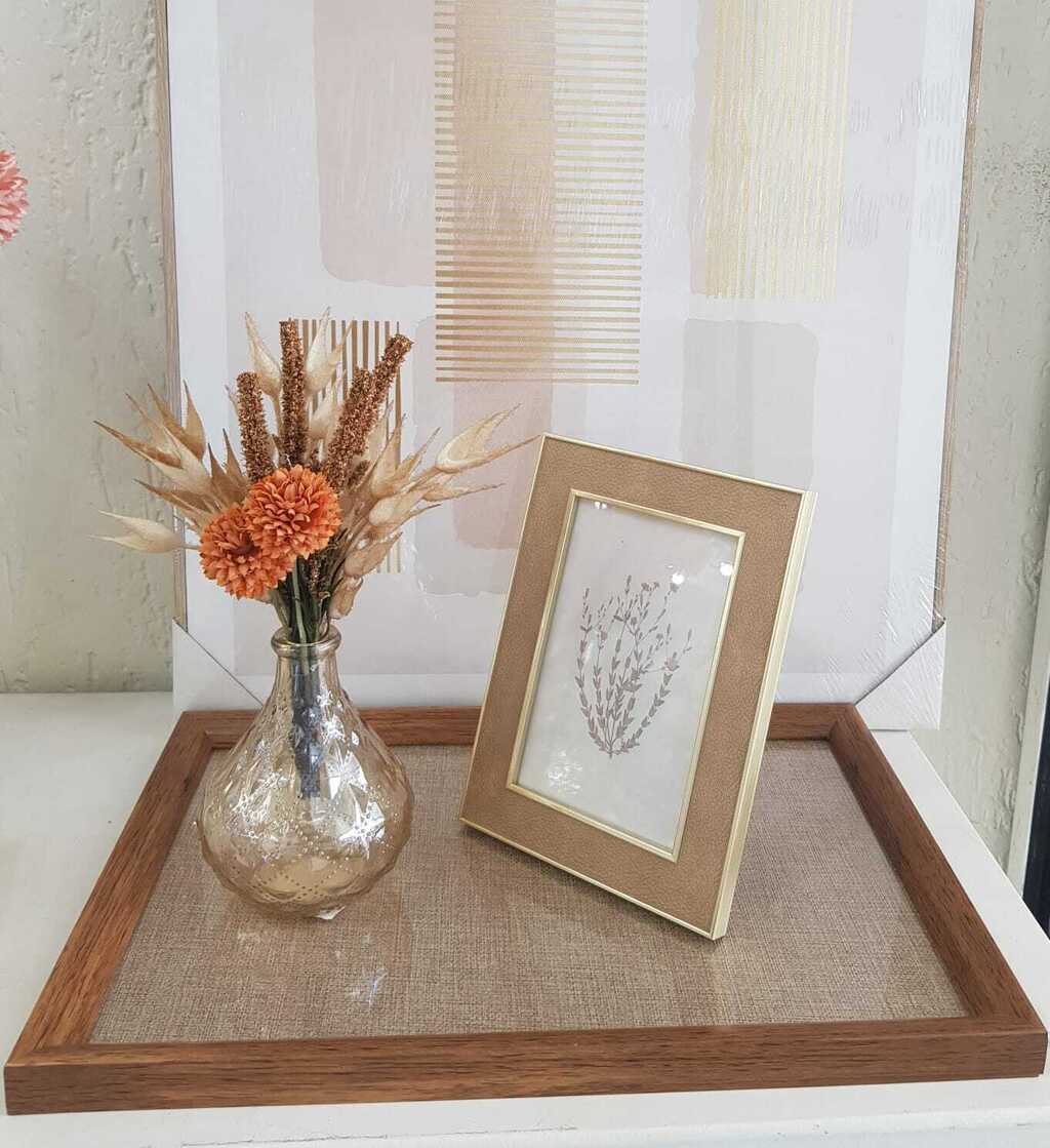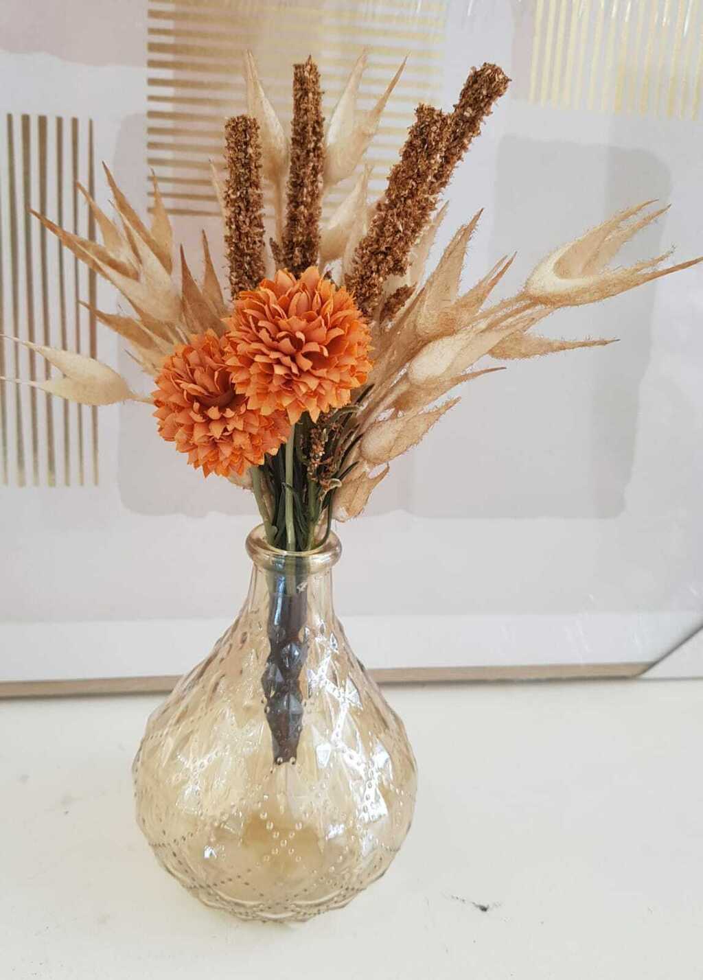 Vaso Decorativo em Vidro na cor Ambar, com Folhagem Seca