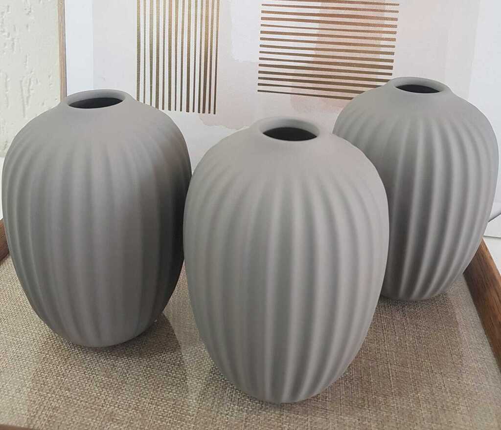 | VASO DECORATIVO EM CERAMICA NA COR CINZA |